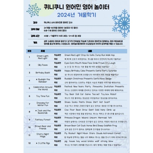 [겨울정규10주]퀴니쿠니 원어민 영어놀이터(금) 36-50개월 엄마랑 요약정보 및 구매