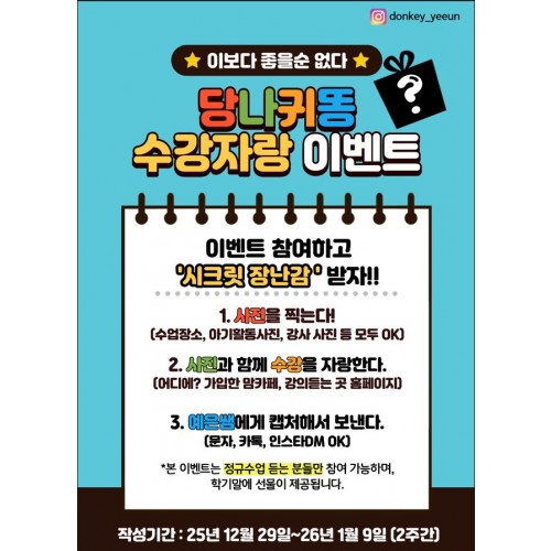 • 각 강좌별 종강 3주전에는 취소 불가합니다. (각 강좌별 종강일 상이합니다.)